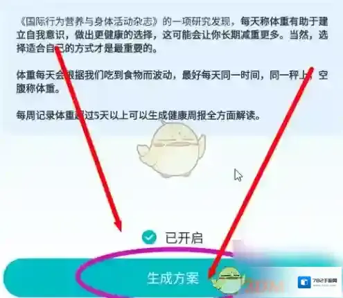 4、点击“生成方案”按钮即可创建减肥目标并生成计划方案了。