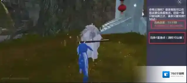 旅者每周可在主城的太子长琴处用尘壤兑换3次星宿点,每次消耗10点尘壤,最多可获得150点星宿点。