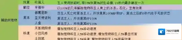 主动技能:宠物主动使用,通常是攻击、复活等技能。