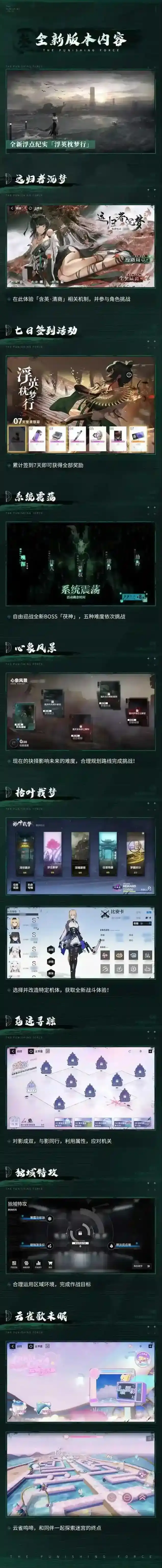 ♦心象风景现在的抉择影响未来的难度,合理规划路线完成挑战♦拾叶载梦选择并改造特定机体,获取全新战斗体验♦觅迹寻踪对影成双,与影同行,利用属性,应对机关♦独域特攻合理运用区域环境,完成作战目标♦云雀歌未眠云雀鸣啼,和同伴一起探索迷宫的终点♦战略评定手册可获得武器涂装〖荧尘敛愿〗(适用武器类型:镰刀)♦晖迹补给参与研发,有概率获取「S级泛用机体任选」包等奖励,具体详情请指挥官查看相关公告内容♦孤山游商本期限量新增逆元碎片-清商、家具套装鬓云兰妆,具体详情请指挥官查看相关公告内容♦新增据点新增第19章、20章、21章▷更多新增与优化内容,请指挥官点击长图查看~