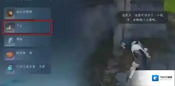 3、之后玩家需要去集市上购买沙土,随后回到梁婆婆这里对话,对话结束即可完成此任务。