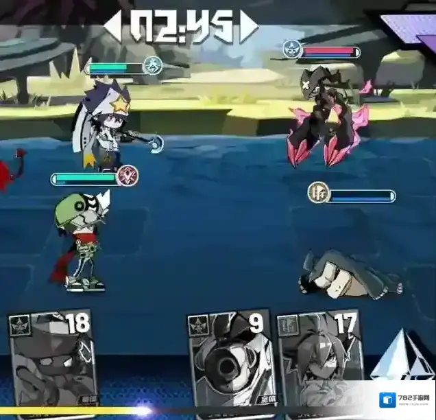然后,双方同号单位之间,比较先手值,以判定谁先普攻。如下图,我方一号单位(雷狮)与对方一号单位(对方场地左上角的怪)同为一号单位,雷狮先手值更高,则雷狮先普攻,反之对面先普攻。