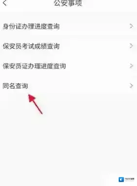 4、进入公安事项,找到下方的同名查询