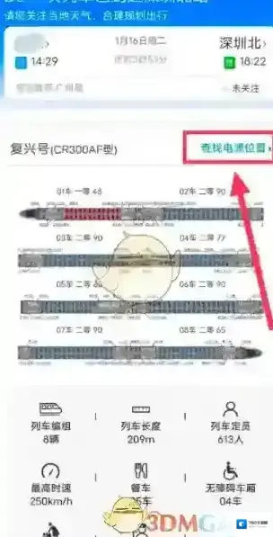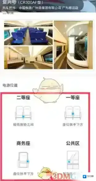 6、在新页面中会告诉我们这辆列车上所有座位的电源插座位置