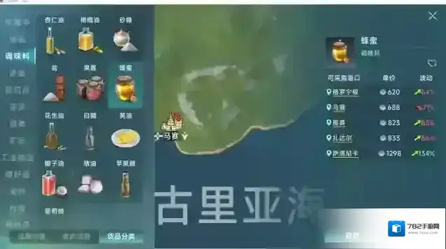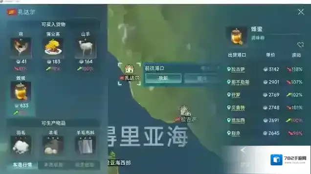 蜂蜜只要获取港口是格罗宁根,马赛,扎达尔。这三个也是我这次攻略重点推荐的起始点,再贩卖完第一船货物后可以直接使用拖航券来到这三个港口中的一个开始进货。配合拖航券来跑可以节省返程时间。