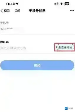 4、人脸通过后点击发送验证码,输入后点击提交,完成手机号找回,可用找回的手机号重新进行注册。