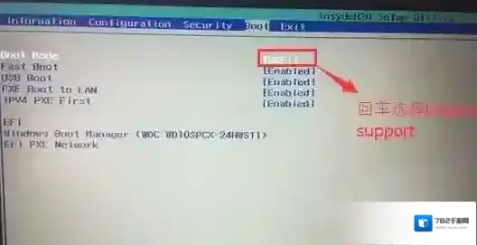 4、切换到Boot,把Boot Mode从UEFI改成Legacy Support,如图:
