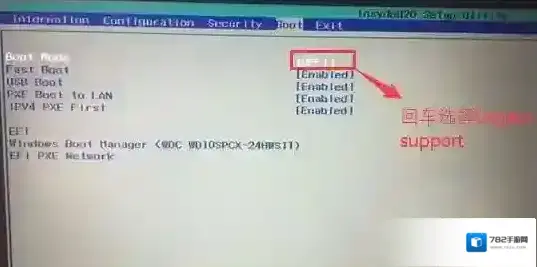 4、切换到Boot,把Boot Mode从UEFI改成Legacy Support,改传统引导,如图: