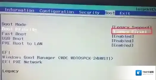 5、再把Boot Priority设置成Legacy First,按F10弹出窗口选择yes回车。如图: