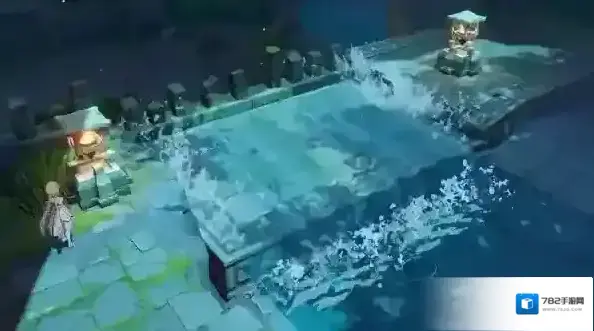 6.返回去有两个石柱的地方,激活这个机关水位就会下降了。