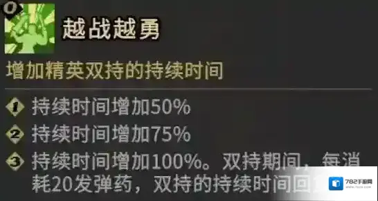 如果在前期点了弹药专家的前提下双持大师>越战越勇,因为越战越勇的持续时长可以保证敖乌的不间断开火。