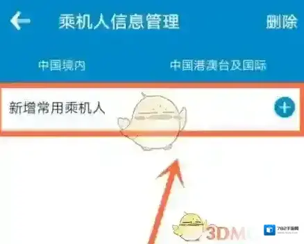 4、进入乘机人信息管理界面后,点击新增常用乘机人进入。