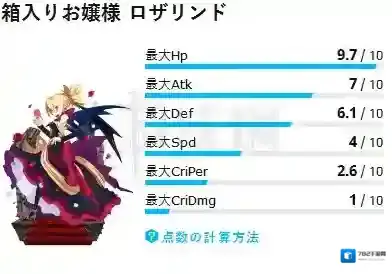 HP和DEF也都算很好看,唯一遗憾的是SPD略低,行动顺位较后,容易被先制(但也容易吃到我方的BUFF)。牺牲了暴击率换取更高的暴击伤害,为了追求攻击特化而更要看脸暴击,个人觉得算是缺点。