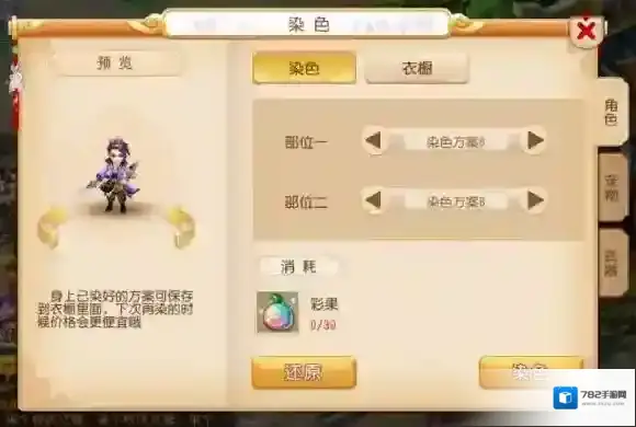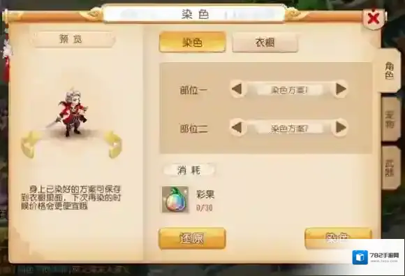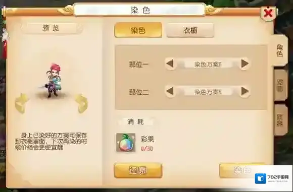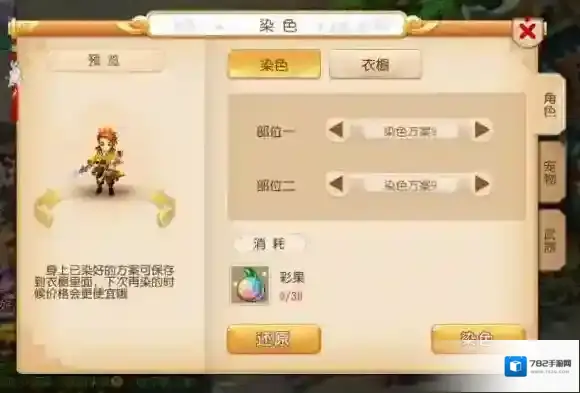 漠少君染色的美腻的样子,彩果染色比其他角色就是好看好看!!!就连华豆染色都好看呢!不能忍啊!不过还是推荐普通玩家需要染色好看一点,可以选择第10方案,因为只要30个花豆就能获得彩果效果的染色呢!