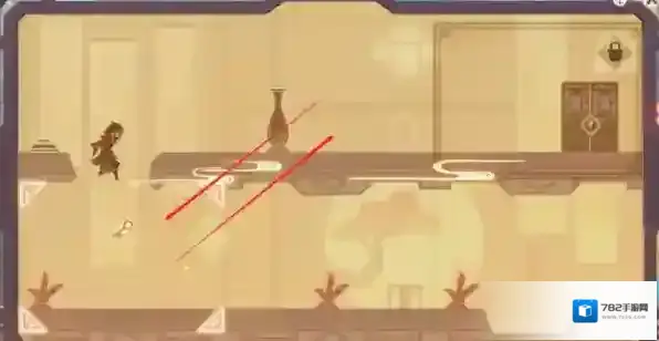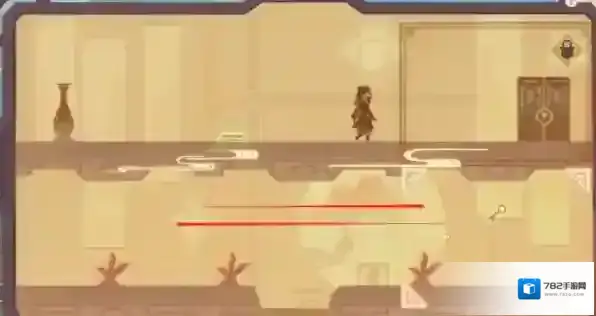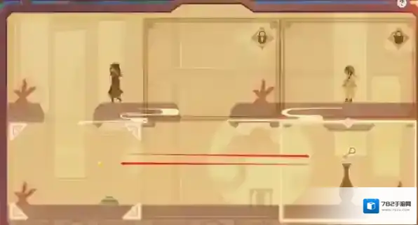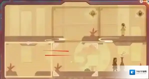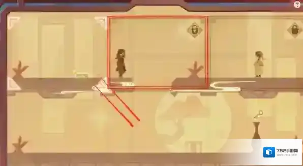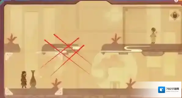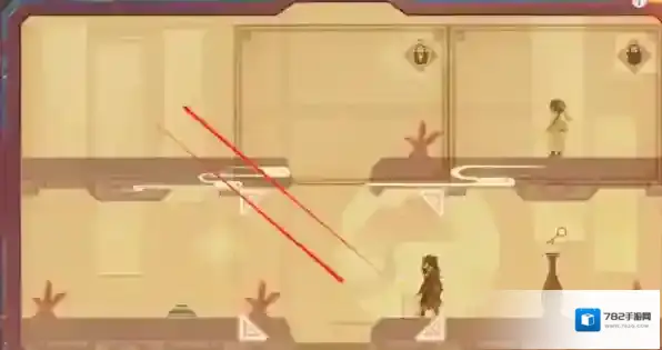 4. 等人物走到下方第二块上时,迅速换到上方第一块去。