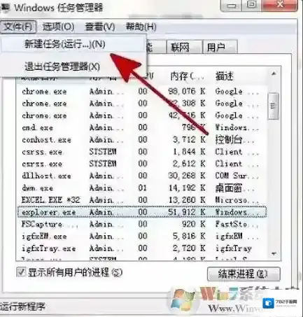 2、重启Windows资源管理器 Explorer.exe使用“Ctrl+Shift+Esc”快捷组合键打开任务管理器m.winwin7.com