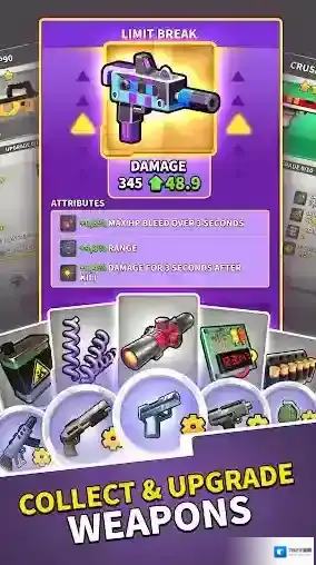 1、通过闯关我们还会获得宝箱奖励,开启宝箱就能获得随机的武器和材料,让你可以解锁升级更多武器,提高火力。