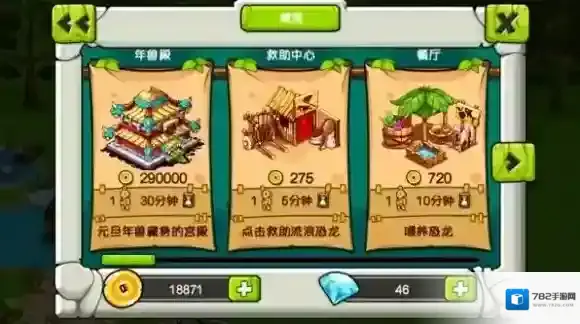 游戏是以恐龙为主题的,在游戏中所有有关于恐龙诞生、交配、救援的建筑全都是必要性建筑。把庄园比喻成一个主题公园,所有的周边配置和建筑都是基于这些来打造的,在游戏中不可能出现两种一模一样的恐龙。
