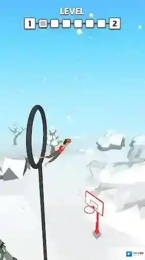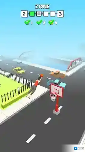 2、游戏的关卡难度逐渐增加,玩家需要通过各种道具在空中进行翻转,将篮球帅气的扣进篮筐。