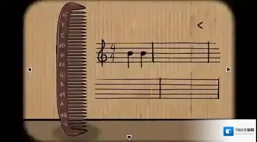 1、梳子视角:点击梳子,根据果实视角纸箱上第二张布胶带图片的提示,用梳子演奏“B→B→D→D→B→B→#G→A→B→D→B→A→#?G→A”,最前面的音符上出现了一把(银钥匙)。