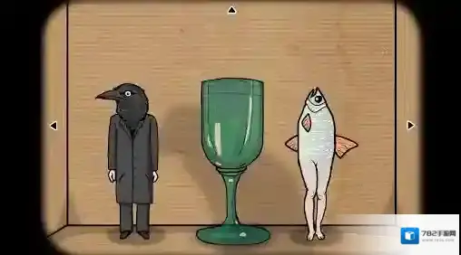 6、酒杯视角:酒杯旁的黑蛋变成的乌鸦先生(这应该是乌鸦先生第一次登场),鱼的尾巴变成了双腿(看起来怪恶心的);点开游玩多米诺骨牌得到的(纸),将乌鸦先生和鱼摆成和纸对应的样子;将(雪茄)塞入鱼嘴中,获得成就(熏鱼),用(点燃的火柴)将雪茄点燃;点击中间的酒杯,酒杯中冒出了红色的液体。