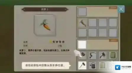 这里有个小技巧:第一天可以不用开垦农田,等第二天卖掉胡萝卜,用所得的钱刚好可以升级工具,把洒水壶升级一次后,一次就能浇三块田,非常方便。