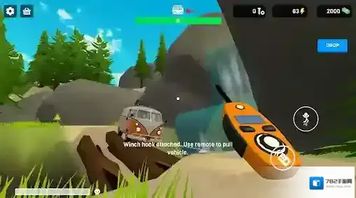 2、在房车头有着绳索,长按即可拉动,将其绑在树木上。