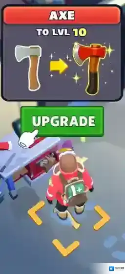 4、有了足够的资源后,我们可以去升级自己的工具,例如斧头,可以帮助你去扫除更多障碍。
