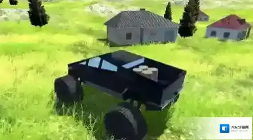2、控卡车(方向盘、踏板),在草地行驶,避障碍,找“箭头”指引的目标点。