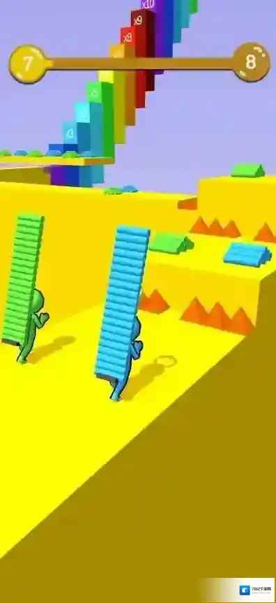 2、赛道策略规划:提前观察赛道障碍分布,标记梯子收集点与近道路线,对密集障碍区预留足够梯子,利用对手搭建的梯子缩短距离,在竞速中灵活调整策略。