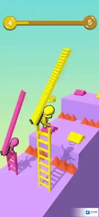 3、实时竞速对战:支持多人同屏竞技或在线匹配,对手会抢夺梯子资源或破坏玩家搭建的爬梯,需在竞速中既要躲避障碍又要干扰对手,通过抢先到达终点赢得比赛胜利。