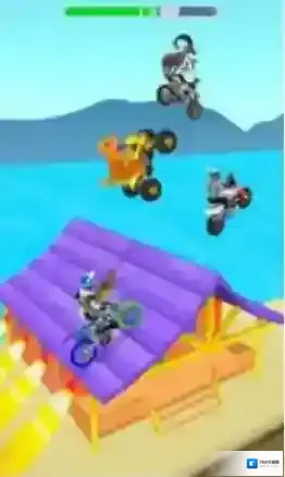 3、冲绿色山坡,稳控摩托,过障碍,保进度条,到终点,赢奖励,解锁新摩托(如Wolf)。