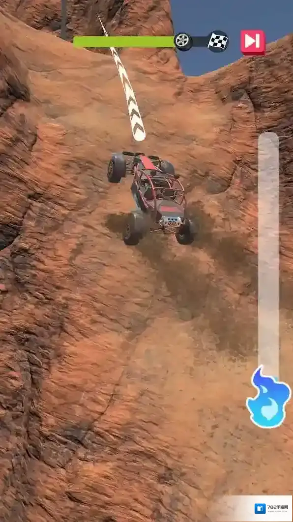 2、硬核操控挑战:触屏调节四驱模式,滑动屏幕控制悬挂软硬,面对交叉轴需精准分配动力,新手可通过渐进式关卡掌握”油门=攀爬力”操控逻辑。