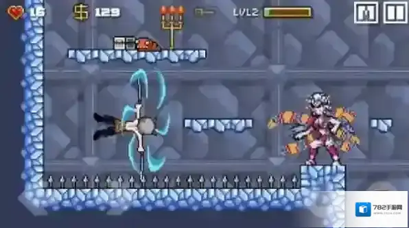 1、闯关战斗操作:操控角色在关卡中与怪物展开格斗,通过按键进行攻击、跳跃与防御,躲避陷阱并击败了所有敌人,完成关卡的挑战。