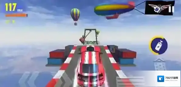 2、在高空赛道,关注左上角速度、状态,避集装箱,借加速冲跳台,利用浮空段调整,稳落地。