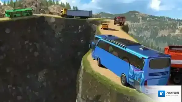 2、山路地形复杂:赛道聚焦崎岖山路,包含连续弯道、陡峭斜坡、泥泞路段等,地形起伏大且路面狭窄,为大巴士驾驶增添多重难度。