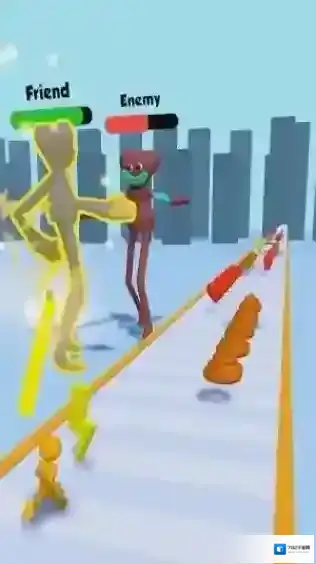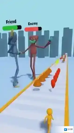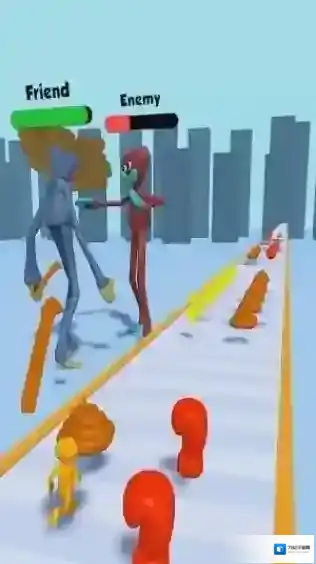 2、该游戏是一款休闲跑酷类,画面中能看到代表“Friend”和“Enemy”的标识,根据提示攻击敌人。