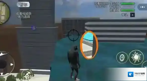 2、遇到建筑时,按箭头指引寻找隐藏入口(如橙色圈区域),进入建筑内部,探索新场景、收集道具。