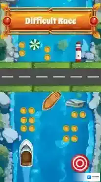 3、紧盯终点靶心,保持航线,灵活躲障碍、抢金币,冲过终点完成关卡,解锁新赛道、艇具,提升竞速技巧。