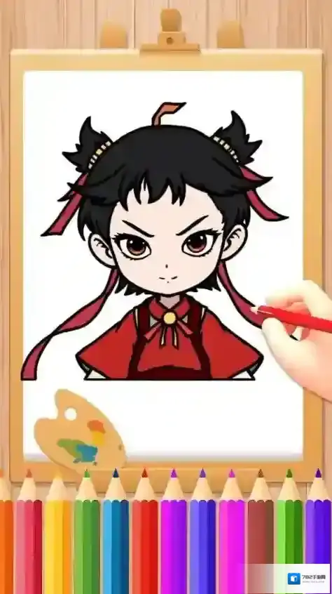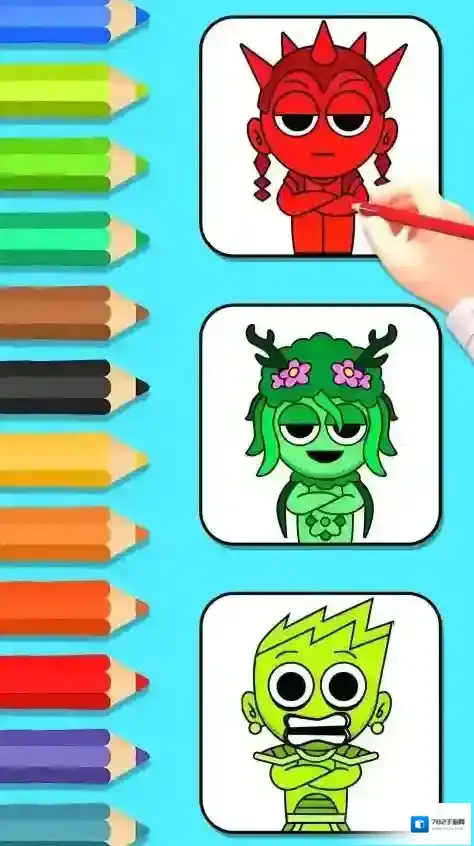 3、通过底部调色笔选取对应的颜色,在图案区域内完成填色,体验涂鸦的乐趣。
