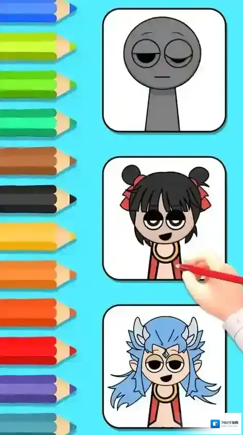2、宝宝们可以从画册中选择已解锁的涂鸦卡通线稿,开始艺术创作。