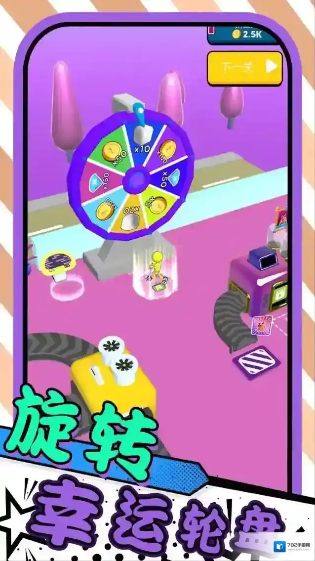3、通关后,点击箭头指向的轮盘位置参与抽奖,获取金币、道具等奖励,用于提升角色或解锁新内容,再点击“下一关”继续挑战。