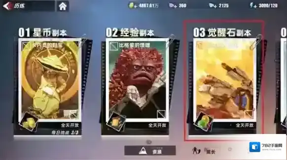 2、进入觉醒石副本后,玩家会遇到三个不同属性的副本。