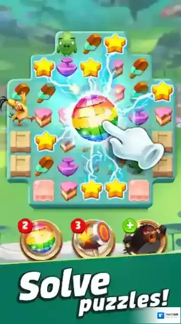 1、轻松畅享消除乐趣,经典有好玩的三消挑战,匹配4个或更多的道具,解决愤怒的小鸟,顺利过关!