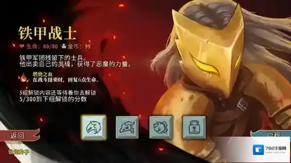 目前游戏共有四个职业可以选择,分别为铁卫士、寂静猎手、故障机器人以及观者,每个职业都有一套固定的起始套牌,再带上99块的金币,就此踏上冒险。
