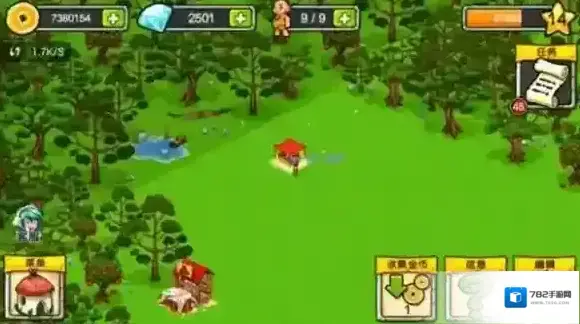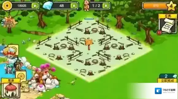 在原始森林中,玩家只需点击想要扩建的地方,并使用少数饲养员即可完成庄园扩建。