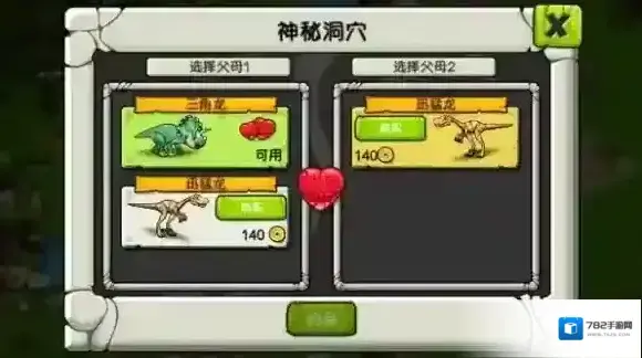 庄园内还可以建设神秘洞穴,为不同种类的恐龙进行配对,诞生出新的神奇恐龙物种。