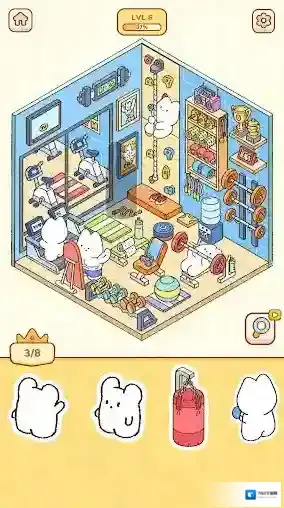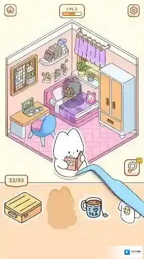 2、装饰迷人的房间,将可爱的贴纸贴到最合适的位置,看着俏皮的动画猫咪将每个场景变得栩栩如生。