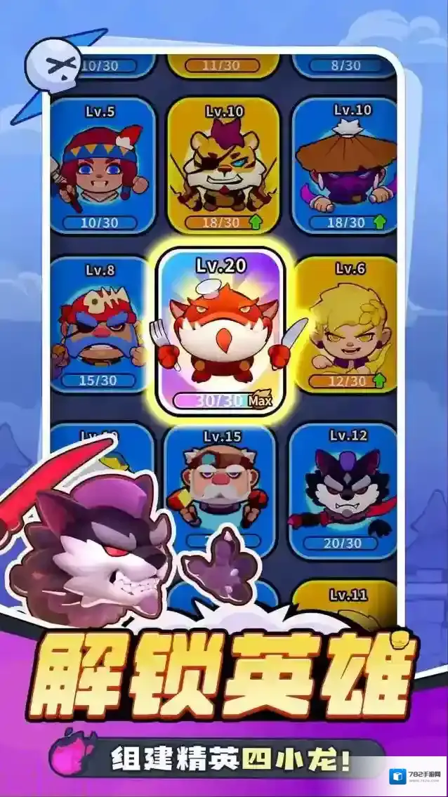 40+可爱英雄,每位英雄拥有专属的技能,前往组建你的精英4人小队!