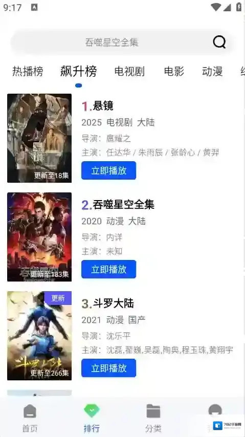 2、排行将影视根据当前热度进行了排序。